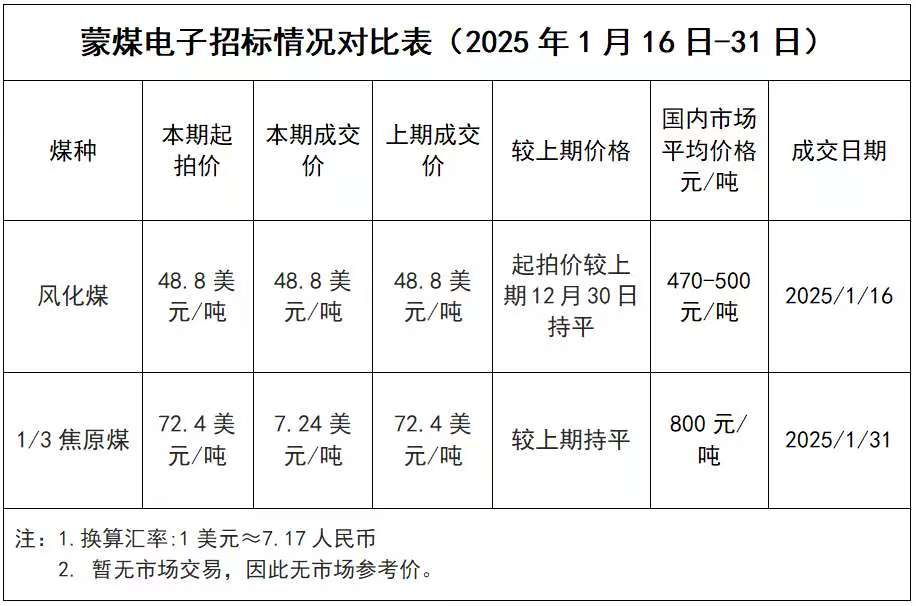 从蒙煤电子竞拍的采集结果来看,2025年1月下半月甘其毛都口岸蒙煤电子竞拍流拍场次占比较高。