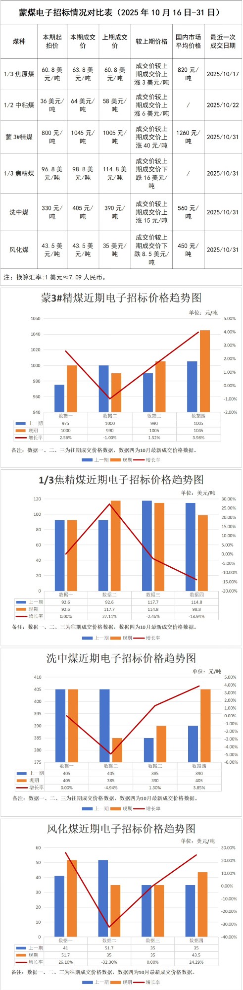 2025年10月16日至31日,煤炭企业参加电子竞拍场次31场,竞拍数量131.84万吨,其中成交26场,流拍5场,成交数量117.76万吨,成交量占竞拍总量89.32%。